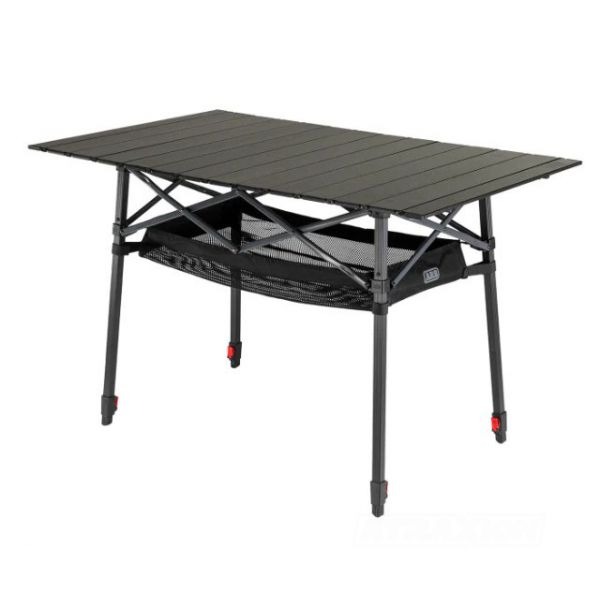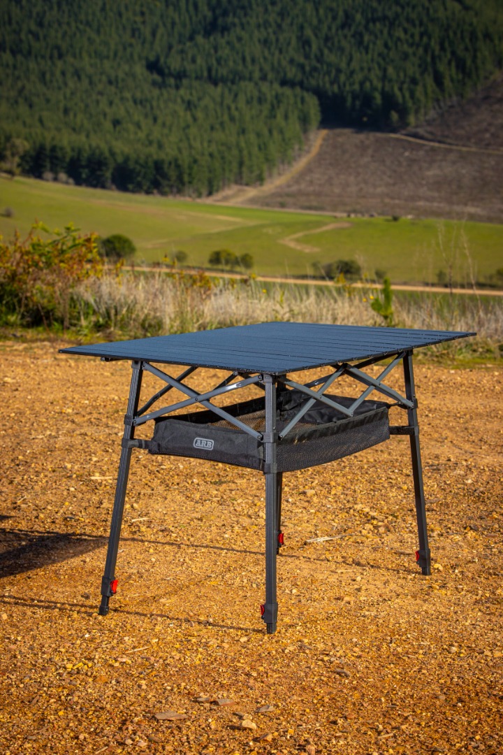 De ARB Pinnacle Camp Table is perfect om te koken en om onderweg te eten. Het duurzame frame is gemaakt van zwart aluminium met contrasterende antracietkleurige dwarsbalken. Het royale, zwarte, robuuste tafelblad biedt voldoende ruimte voor uw fornuis, borden of maaltijden. Een sleutelkenmerk van deze tafel zijn de verstelbare poten. Elke poot kan onafhankelijk aangepast worden om stabiliteit op oneffenheden mogelijk te maken, en de tafelhoogte kan overal worden aangepast van 79cm tot 99cm. Er zijn ingebouwde beugels op het frame waarin de meegeleverde gaasmand is bevestigd voor opslag. De tafel kan worden opgeborgen in een compacte 600D polyester draagtas met ingebouwde interne verdeler die het tafelblad van het frame scheiden.