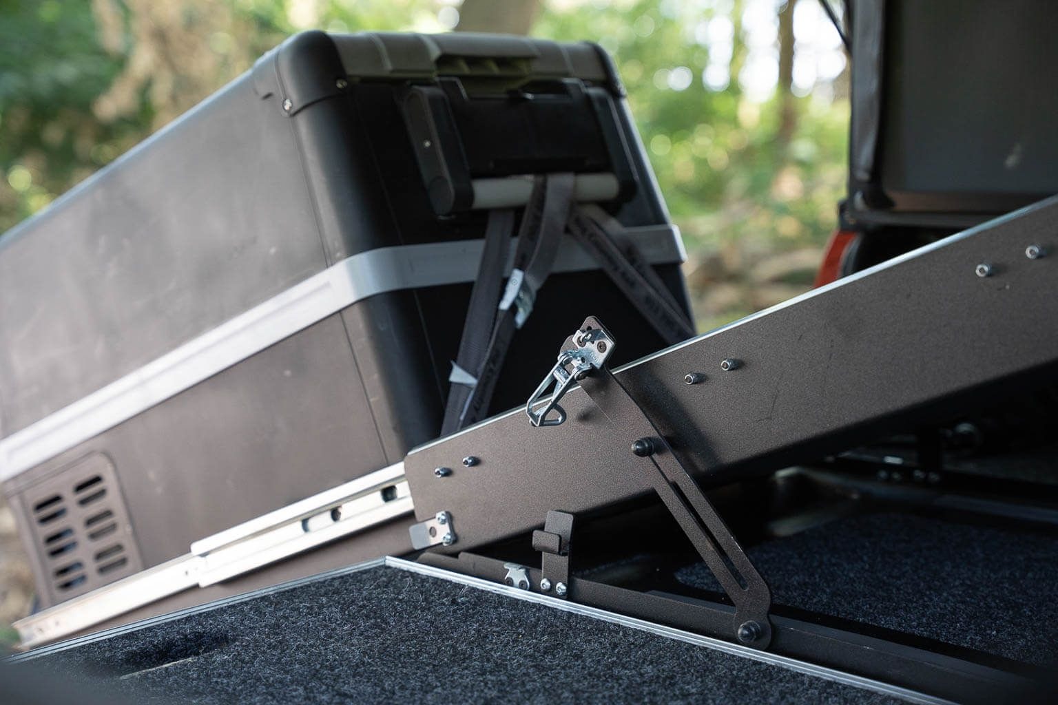 De slider loopt zeer soepel door de zware kwaliteit telescopische kogelgelagerde geleiders en wordt automatisch geborgd na het inschuiven, zodat deze niet ongewenst beweegt tijdens het rijden.