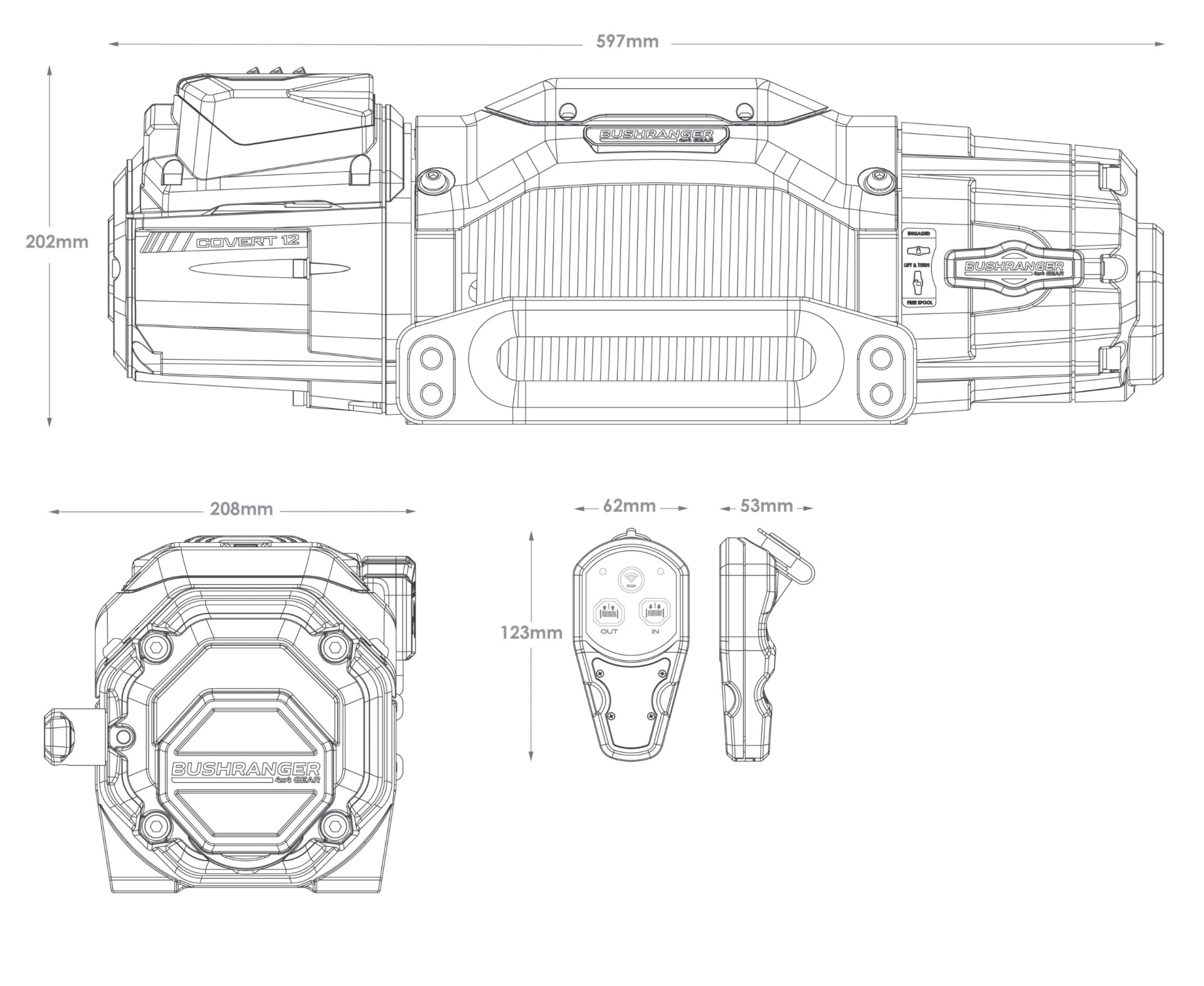 Equipped with an ultra-efficient all-in-one motor control unit paired with a finely tuned 5.7hp 12-volt motor, the Bushranger COVERT winch is the first Australian-designed 4X4 winch without an externally mounted control box. Designed from the ground up, utilising top-tier components and backed by a rigorous Australian testing protocol, the COVERT winch demonstrates proven reliability and longevity. The compact, synergistic design provides the fast line speeds and rugged durability you demand from a vehicle recovery winch and provides an unobtrusive COVERT fitment.