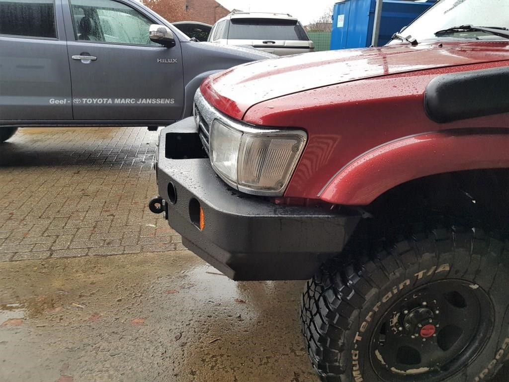 Deze bumper heeft bevestigingsgaten voor beugelgrepen, twee gaten voor hi-lift en gaten voor halogeenlampen.