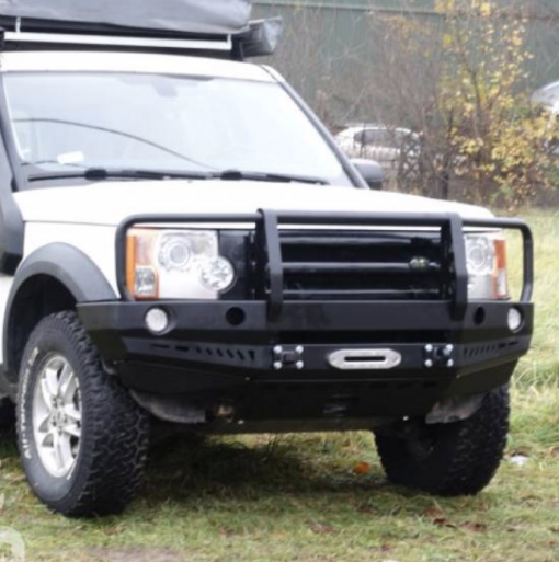 Voorbumper met lierplaat en bullbar (of zonder ), speciaal voor de LAND ROVER DISCOVERY III-auto. De hoofdstructuur van de bumper is gemaakt van 3 mm dik plaatstaal en de lierplaat en framebevestigingen zijn gemaakt van 5 mm dik plaatstaal. Het product wordt eerst met een laser gesneden, vervolgens gebogen op een CNC-afkantpers en tijdens handmatige afwerking wordt de juiste vorm verkregen. De volgende fase is de bescherming tegen corrosie, bestaande uit het aanbrengen van een zinkpoederprimer en een poedercoating die de bumper zijn uiteindelijke uiterlijk geeft. Deze bumper heeft montagegaten voor beugelhandvatten, twee gaten voor de hi-lift krik en gaten voor halogeenlampen (wij adviseren lampen: NOXON-OK1 Ø 90mm x H36mm). De solide stalen structuur maakt volledig off-road gebruik van de bumper mogelijk. De bumper verbetert absoluut het comfort van offroad rijden, maakt comfortabel gebruik van de lier mogelijk, verbetert de veiligheid en geeft de auto het juiste karakter met zijn uiterlijk. In de set vindt u alle benodigde elementen voor montage. De set bevat geen extra elementen (bijv. beugelgrepen, lampen, lierschuif) die op de foto's zichtbaar kunnen zijn. Sommige kenmerken kunnen afwijken van de bumper op de foto. Neem voordat u een bestelling plaatst contact met ons op om de conformiteit van de bestelde goederen en de mogelijke leveringsdatum te bevestigen. De bumper is niet goedgekeurd. Al onze producten zijn standaard gelakt in mat zwart RAL 9005 fijnstructuur.