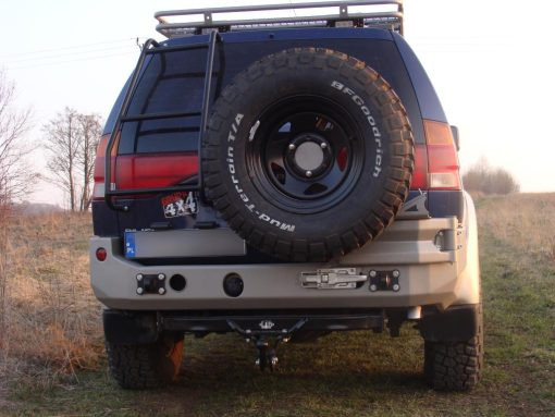 Achterbumper, speciaal voor MITSUBISHI PAJERO SPORT 96-00 . De hoofdstructuur van de bumper is gemaakt van 4 mm dik staal en de bevestigingen aan het frame zijn 5 mm dik . Het product wordt eerst met een laser gesneden, vervolgens gebogen op een CNC-afkantpers en tijdens handmatige afwerking wordt de juiste vorm verkregen . De volgende fase is de anticorrosiebescherming , bestaande uit het aanbrengen van een zinkpoederprimer en poedercoating die de bumper zijn uiteindelijke uiterlijk geeft.