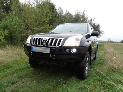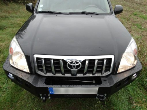 Voorbumper met lierplaat , speciaal voor TOYOTA LAND CRUISER 120 Serie . De hoofdstructuur van de bumper is gemaakt van 4 mm dik plaatstaal en de lierplaat en de framebevestigingen zijn gemaakt van 5 mm dik plaatstaal . Het product wordt eerst met een laser gesneden, vervolgens gebogen op een CNC-afkantpers en tijdens handmatige afwerking wordt de juiste vorm verkregen . De volgende fase is de anticorrosiebescherming , bestaande uit het aanbrengen van een zinkpoederprimer en poedercoating die de bumper zijn uiteindelijke uiterlijk geeft.