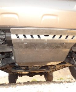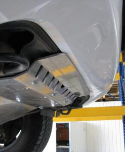 Deksel voor de motor van de TOYOTA LANDCRUISER 200 SERIE , gemaakt van 6 mm dik aluminium . Het product wordt eerst met een laser gesneden, vervolgens op een kantpers gebogen en tijdens handmatige afwerking wordt de juiste vorm verkregen . De hoes beschermt het verloopstuk tijdens het off-road rijden.