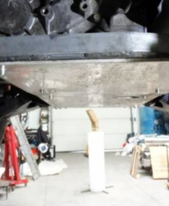 Transmissie- en reductiekap speciaal voor MITSUBISHI L200 IV 05-10, gemaakt van 6 mm dik aluminium. Het product wordt eerst met een laser gesneden, vervolgens op een kantbank gebogen en de juiste vorm wordt verkregen door handmatige afwerking. Een afdekking beschermt de versnellingsbak en het voertuigreductiemiddel van onderaf bij off-road rijden.