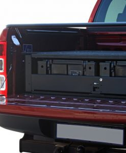 This Wolf Pack based lockable drawer system provides a comprehensive and practical vehicle based storage solution. The removable Wolf Pack boxes simplify the organizing and transporting of stored items between the vehicle and the campsite, garage, store, etc. Designed specifically to fit the contours of the Ford Ranger T6. Engineered tough for both on and off-road conditions.