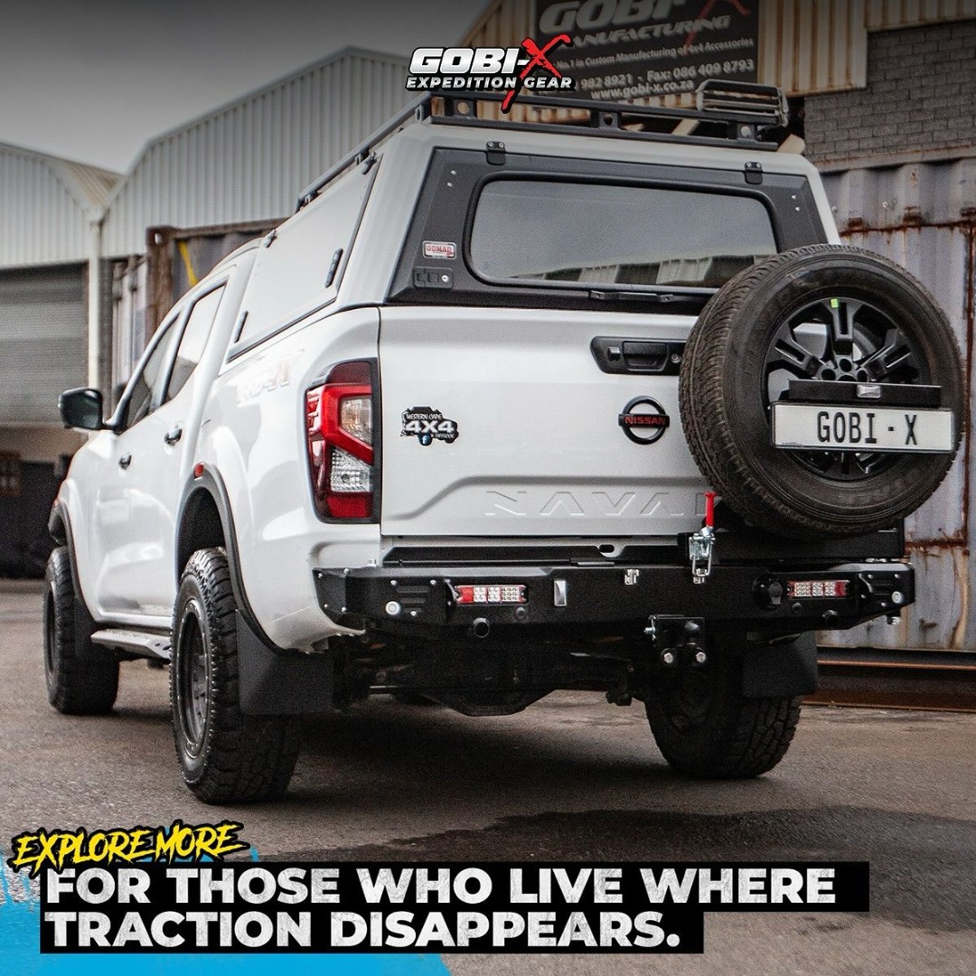 De achterbumper voor de Nissan Navara (2022-) bevat twee montagebeugels die direct aan het chassis verbonden worden, dit zorgt voor een enorme stevigheid. De bumper is voorzien van Hi-Lift Jack punten en is aan beide kanten voorzien van geïntegreerde scharnierpunten om de optioneel verkrijgbare scharnierende beugels te monteren. Deze onverwoestbare beugels zijn niet inbegrepen en los verkrijgbaar voor reservewielen, jerrycan houders en opslagboxen.