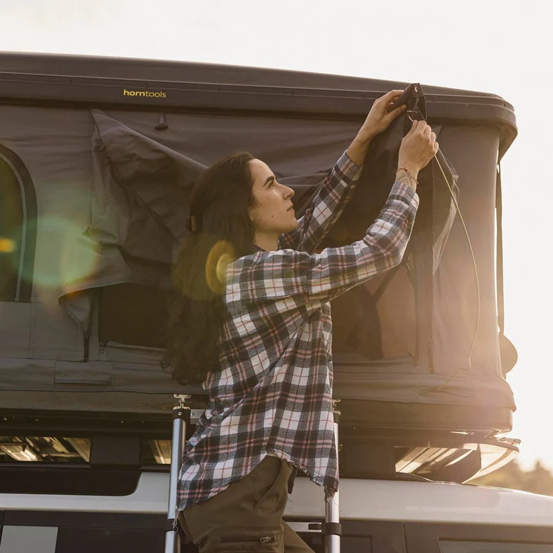 Onze daktenten zijn geschikt voor alle voertuigmodellen. Het enige dat u nodig heeft is een imperiaal. Vervolgens wordt de daktent op het imperiaal bevestigd. Alles wat je nodig hebt, zit al in de daktent. Of het nu gaat om een T5, T6, Jimny, Ford Ranger, pick-up, VW-bus, stationwagen of Golf - de Themis past bij elke auto. Let wel op de dakbelasting van uw auto. Deze vindt u in de gebruiksaanwijzing of op internet. De dakbelasting moet voldoende hoog zijn om de daktent te kunnen dragen.