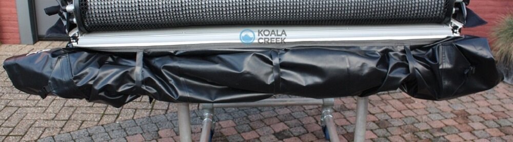 - Op de 4 cover kanten zitten 2 spanbanden voorzien van sterke UV proof nylon click-in gespen.