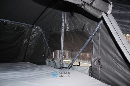 Alle Koala Creek® daktenten hebben extra dik (25 mm.) aluminium buis frame met metalen scharnierpunten. Om de framebuizen zitten hoezen tegen condensvorming. Vanwege het rechthoekig gevormde frame heb je een maximale binnenruimte.