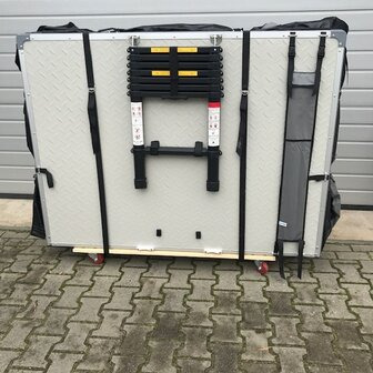 Ingeklapt ca. 165 x 125 x 35 cm. (Hogere scharnieren, inclusief gemonteerde montagerails + ladder + cover)