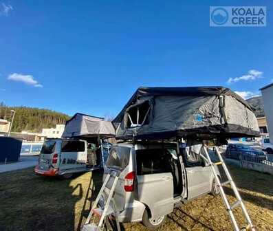 - Deze daktent heeft een verstevigde en geïsoleerde bodemconstructie met aan de buitenzijde aluminium tranenplaat.
