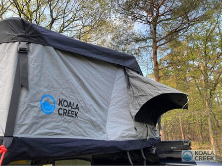 - De zwarte cover kun je gemakkelijk oprollen en zo onder de daktent bodem laten hangen.