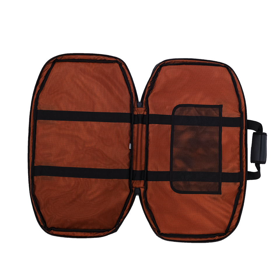 In de binnenkant is het veiligheidsoranje materiaal samengevoegd met het beschermende zwarte gaas, dit biedt het de optimale bescherming voor uw MaxTrax Mini zandplanken.