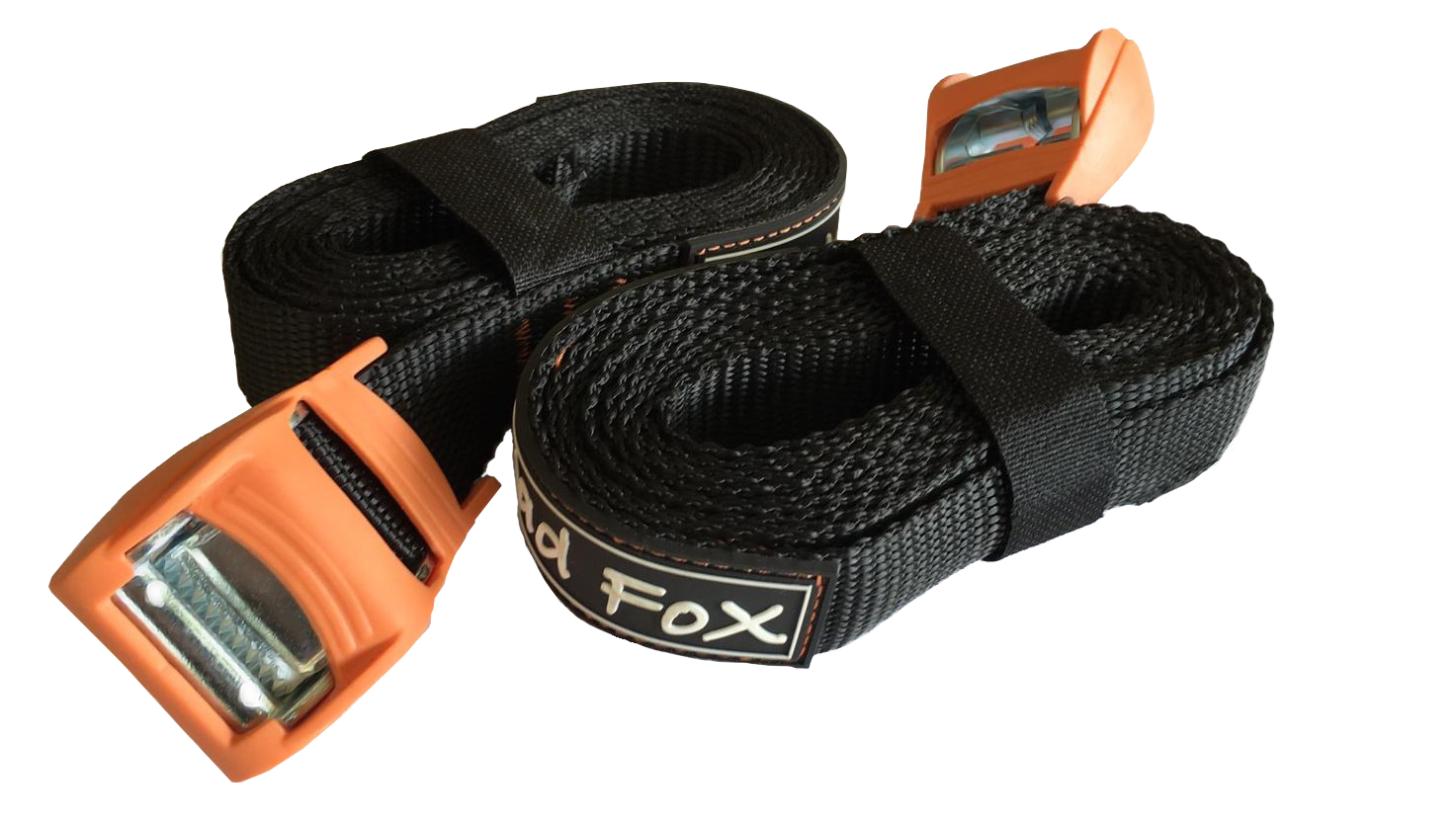 De Tie Down Straps worden geleverd met een oranje rubberen hoes om krassen en rammelaars te voorkomen.