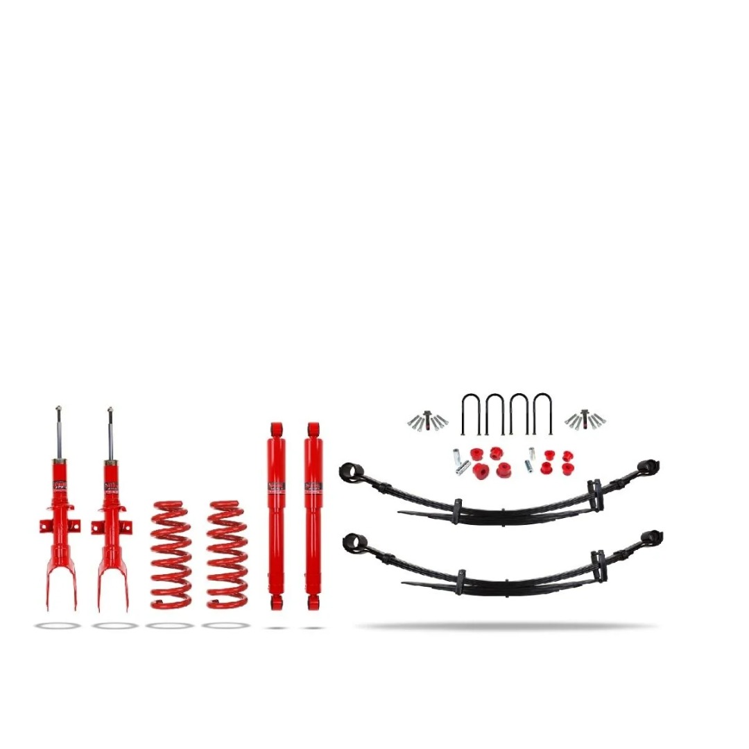 Deze kit bevat onze uitstekende Pedders TrakRyder-schokbrekers, schroefveren voor, nieuwe bladveren achter, evenals de nodige bussen en U-bouten om ze te installeren. draagvermogen en trekvermogen.