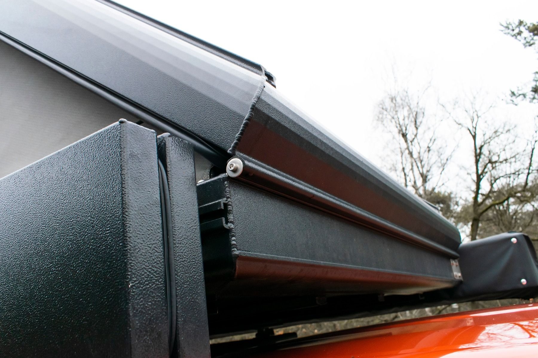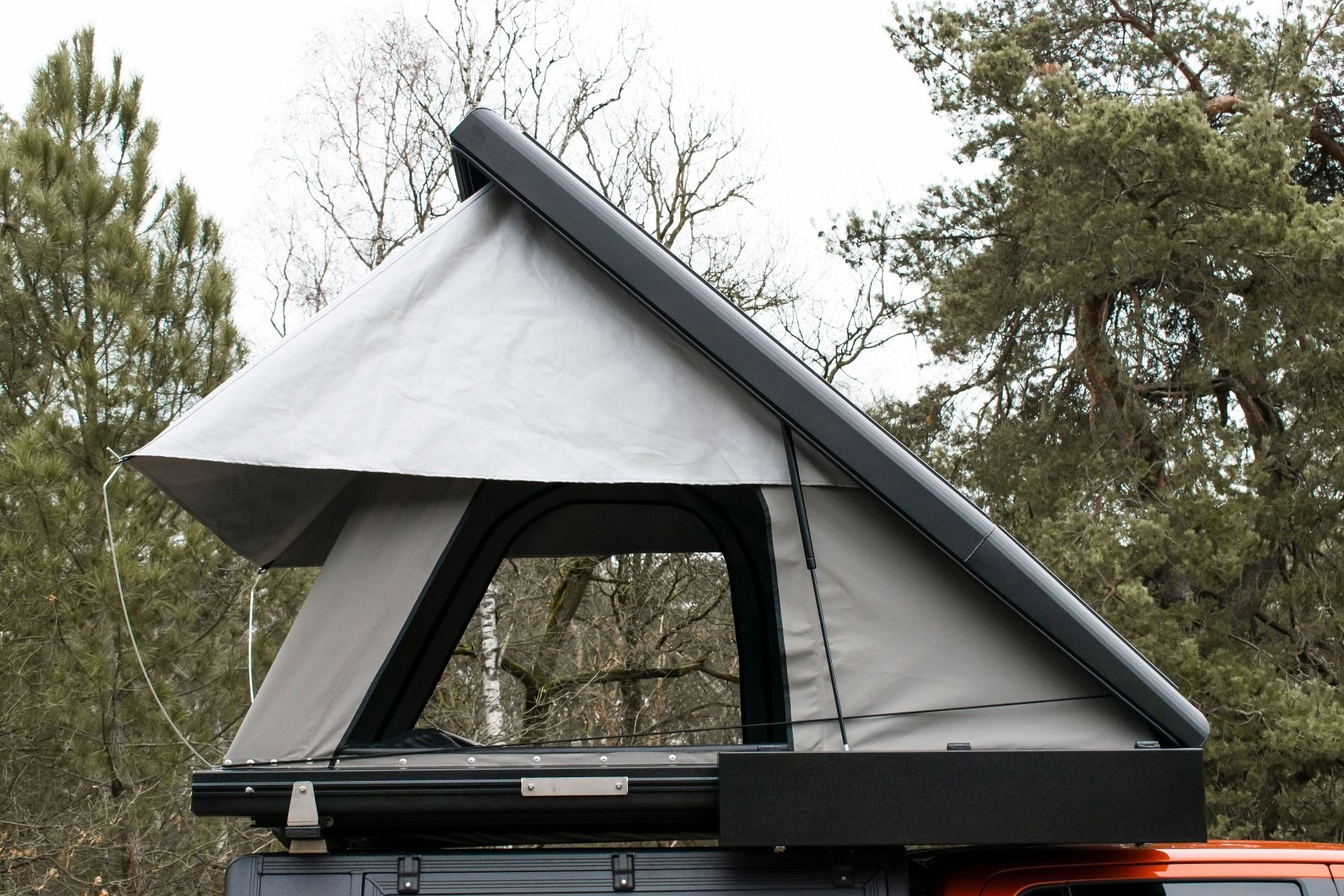 Daarnaast is er gebruik gemaakt van hoge kwaliteit canvas met daarin flinterdunne alluminium draden die het canvas versterken. U hoeft zich dus nooit zorgen te maken over scheuren in de daktent. Alle canvas zijdes hebben een luifel van datzelfde materiaal om u te beschermen tegen regen en dauw en schaduw te creëren zodat het in de tent koel blijft.