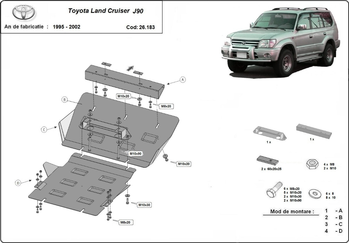 | De motor beschermplaat is nieuw en past perfect bij alle versies van Toyota Land Cruiser J90 geproduceerd tussen 1995 en 2002. |