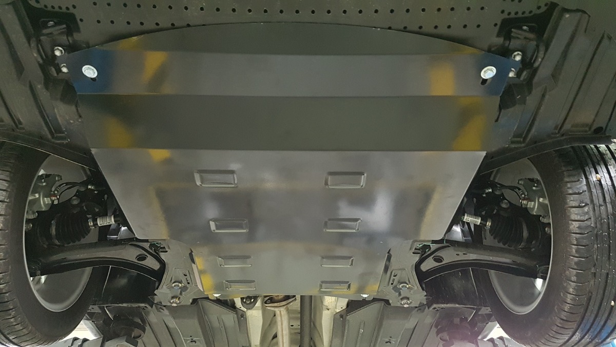 | Het monteren van de carterbeschermplaat eist geen wijzigingen aan de voertuigstructuur. |