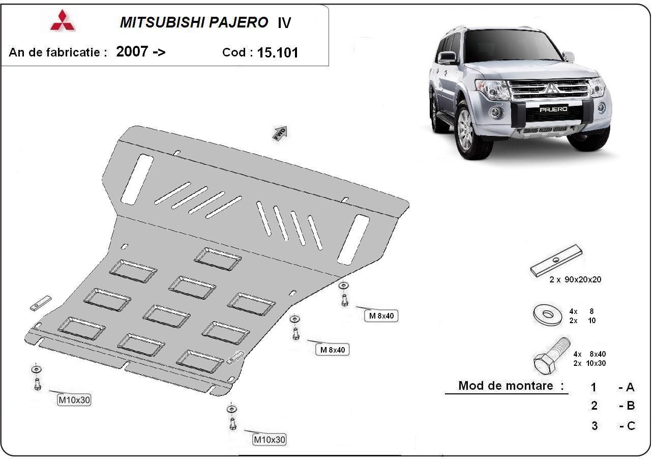 | De motor beschermplaat is nieuw en past perfect bij de Mitsubishi Pajero 4 (V80, V90), met de volgende motor / aandrijfversies: 3.8; 3.2 Di-D - geproduceerd tussen 2007 en 2021. |