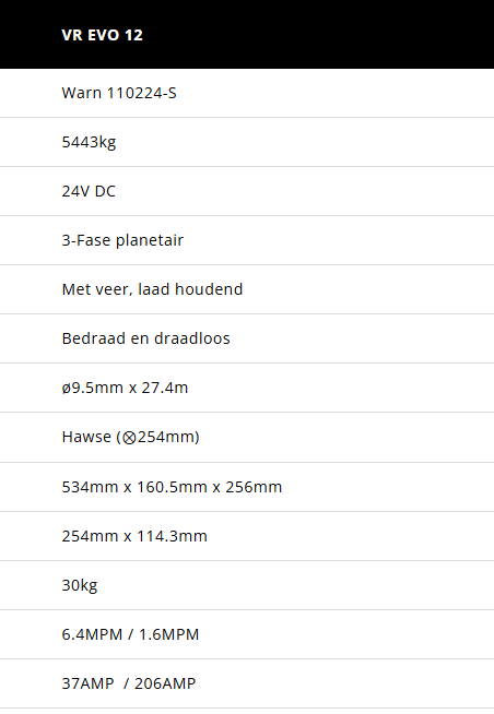 Ideaal voor grotere pickups, 4x4 voertuigen en SUV's die zwaar lierwerk vereisen De VR EVO 12S beschikt over beschermingsklasse IP68 waterdichte constructie, ultrabetrouwbare Albright®-contactor en verplaatsbare lierbedieningskast en een geavanceerde twee-in-één afstandsbediening voor extra gebruiksgemak en veelzijdigheid. Met zijn hoge lijnsnelheid en laag stroomverbruik behoort de VR EVO-serie treklieren tot de beste standaard-duty lierenserie die Warn ooit heft gemaakt. De VR EVO-serie is scherp geprijsd en heeft een doordacht ontwerp die er ook nog eens goed uitziet.