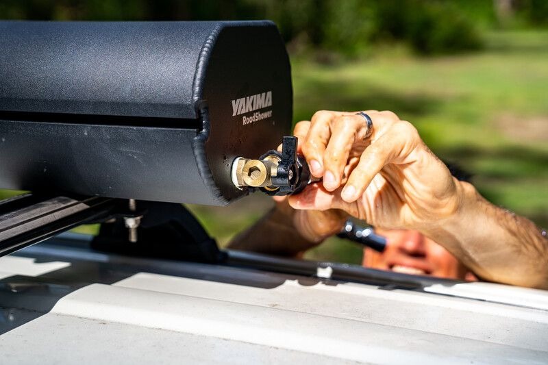 Verder kunt u de Roadshower voorzien van een compressor wat er voor zorgt dat u de waterstraal kunt verstellen om bijvoorbeeld uw spullen schoon te spoelen zoals de vaatwas of uw mountainbike zo is de Roadshower multi inzetbaar. U kunt water toevoegen aan de hand van de handige draaidop die verbonden is aan een watertank met een capaciteit van 18.2 liter. Daarnaast is het mogelijk om ook tijdens de bewolkte dagen gebruikt te maken van een warme douche doormiddel van een warmwaterboiler (deze wordt niet meegeleverd)