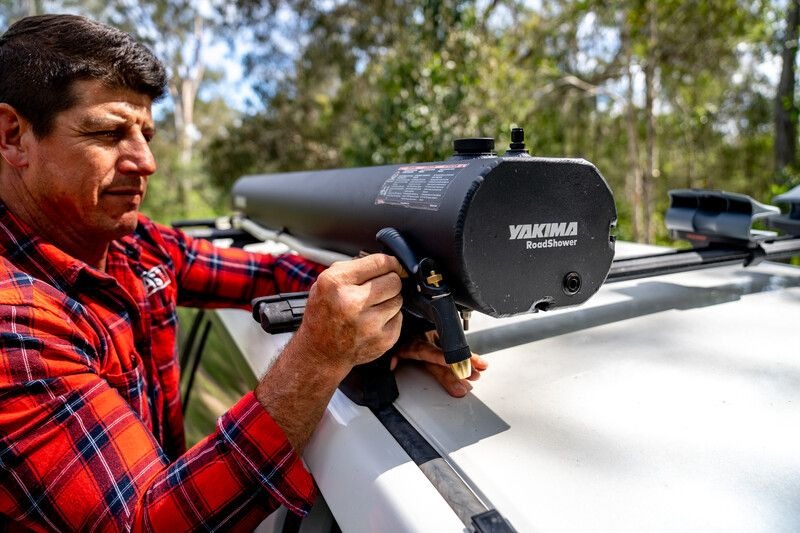 Verder kun je de Roadshower uitrusten met een compressor die ervoor zorgt dat je de waterdruk kunt aanpassen om je spullen zoals de afwas of je mountainbike af te spoelen, waardoor de Roadshower multi-inzetbaar is. Je kunt water toevoegen door middel van de handige draaidop die verbonden is met een watertank met een inhoud van 26 liter. Het is ook mogelijk om op bewolkte dagen een warme douche te gebruiken met behulp van een warmwaterboiler (niet inbegrepen).
